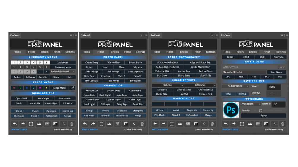 The Ultimate Editing Tool for Adobe Photoshop CC. The Pro Panel will save you valuable time as well as enhance your creative abilities within Photoshop. The panel's features include powerful luminosity and color mask creation, as well as shortcuts for all the essential Photoshop retouching workflows.